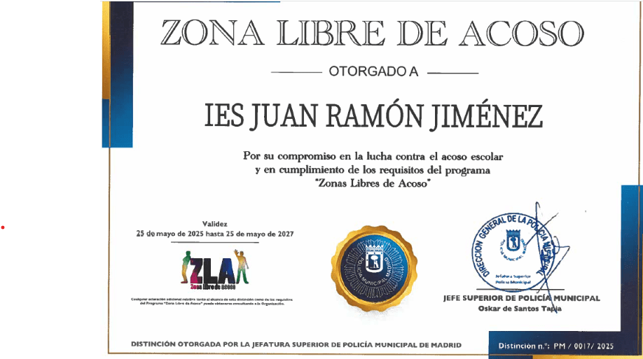 El IES JRJ despues de una año de formación por parte de Policía Municipal de Madrid, en las aulas, al profesorado y equipo directivo, a los alumnos mediadores, y la ... [leer más]