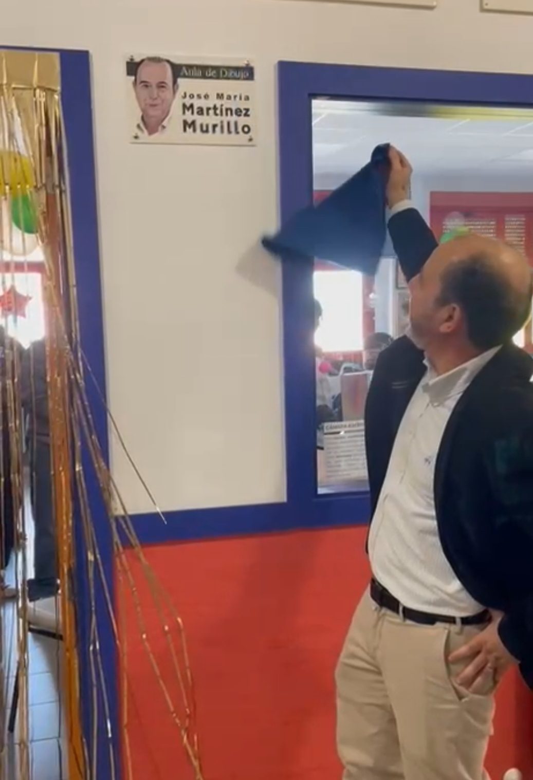 Así le han definido en su despedida sus compañeros en el IES, un maestro de taller, con elegancia, teniendo el arte de equilibrio. Su pasión y compromiso la supo mantener todos los días de su trabajo en aula. Supo transmitir su conocimiento y amor por el arte de forma inspiradora, teniendo en el día de su jubilación a su alumnado muy cerca, así como al resto de compañeros, lo que da valor a su buena labor docente. Por ello, el centro ha querido homenajear con la denominación al Aula de Dibujo como Aula de José María MARTÍNEZ MURILLO.